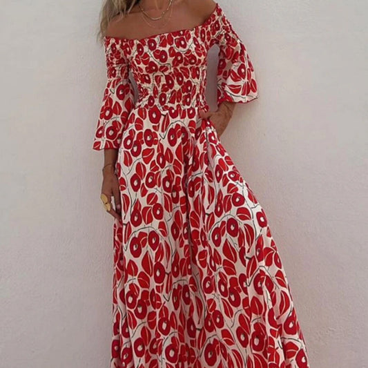 Abito Lungo Floreale con Spalle Scoperte – Eleganza da Vacanza